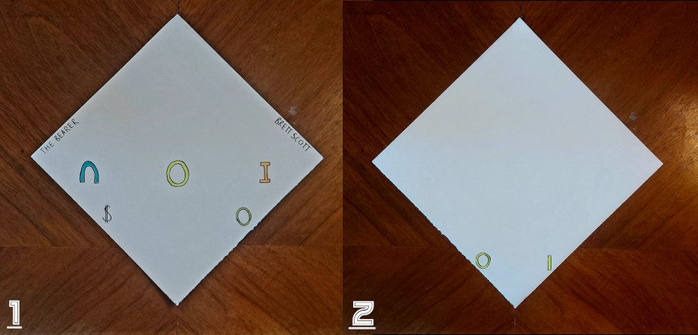 Now onto the most controversial question: should an origami voucher for money truly count as a stablecoin? Well, why not? The whole point of crypto culture is to try create bearer instruments in the digital realm, but a bearer instrument in the physical realm is naturally decentralized in the sense that it passes from hand to hand in a peer-to-peer fashion, and a distant authority cannot send out an order to have it blocked or reversed or whatever. There’s a reason why crypto culture appropriated the word ‘coin’ in the first place, and that’s because the original bearer instrument is cash. My origami voucher is a cash-like instrument (albeit operating in the third layer of the money system rather than the first), so I’m going to appropriate the term stablecoin to refer to it, because language is malleable and I’m allowed to.