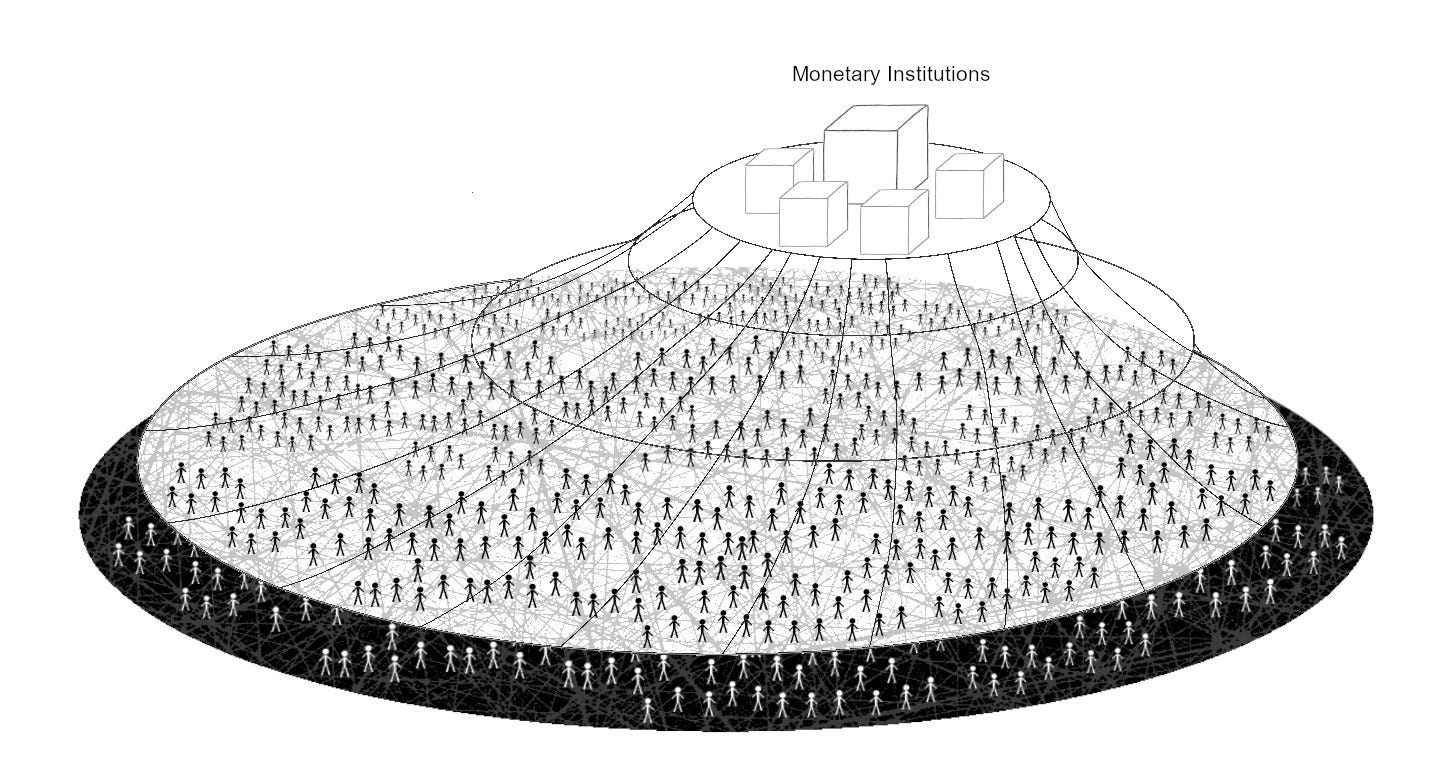 Money issuers occupy a vertical dimension, issuing money down to ordinary money users, and pulling it back up (DISCLAIMER: this is a piece about state money issuance, and I’m going to avoid talking about bank money issuance here - for anyone who wants to pick that thread up, see this piece)