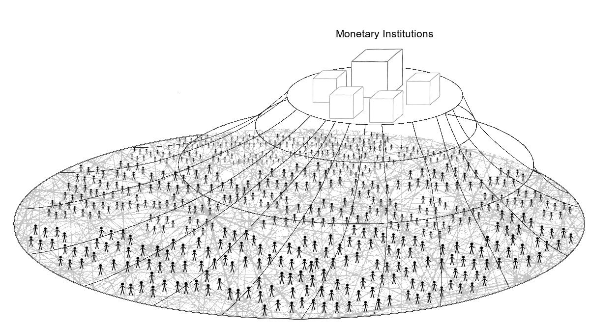 Money users occupy the horizontal dimension, using the vertically issued credits horizontally between themselves as a means to forge and maintain ties of interdependence