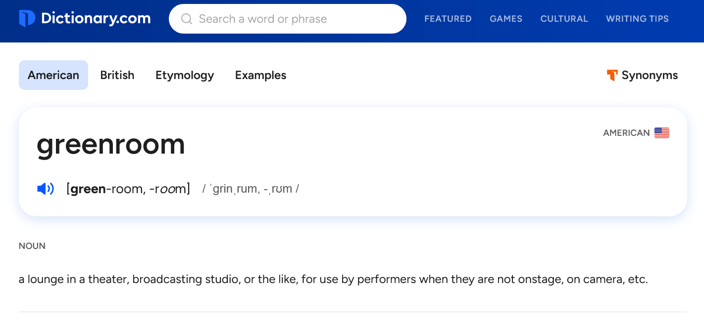 Anyone who has ever been involved in performance of some kind - whether you’re a keynote speaker, a politician or a member of a band - will know about the green room. This is the specially designated backstage space where a performer can relax before or after a show. It’s designed to be free from the pressures of fame, a little enclave in which it’s a faux pas for attendants to ask for an autograph or selfie.