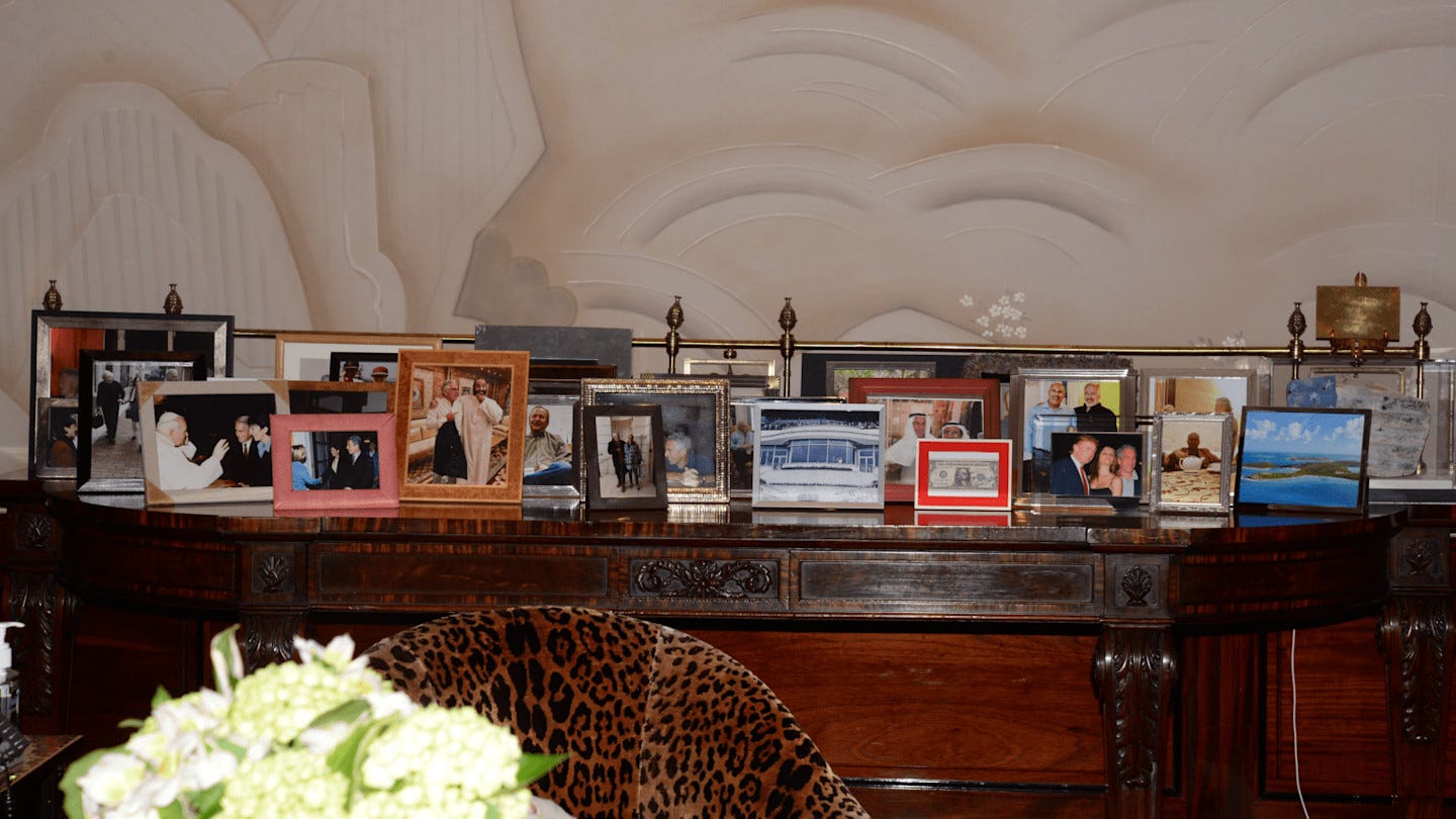 When looking at that table full of photos collected by Epstein (see above), you sense that while this super-connected power-broker was a master manipulator in a web of influence, he was also simultaneously like that kid who tries to get his status by being seen around the in-crowd, and placing himself in the middle of it.
